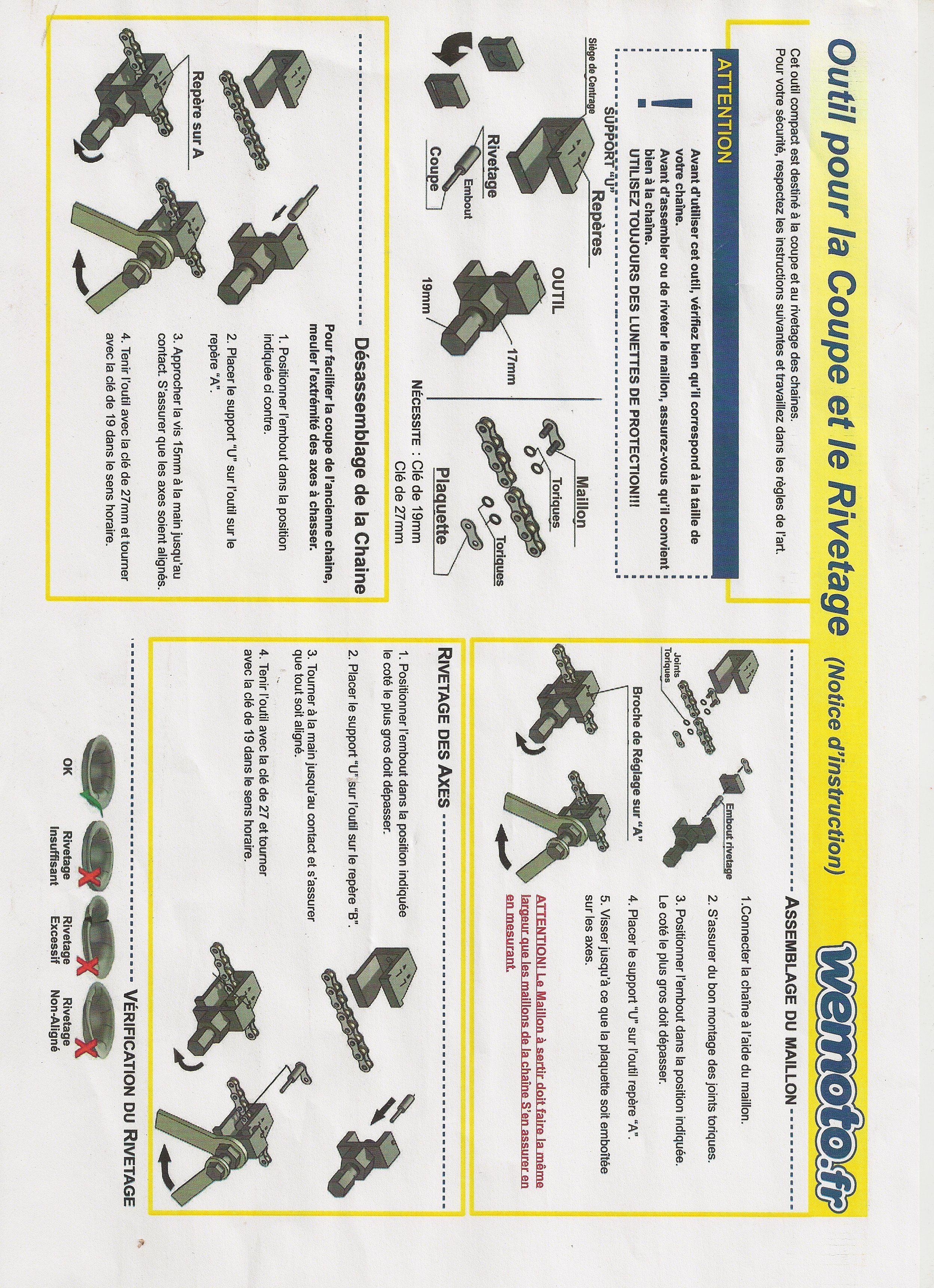 Outil de rivetage chaine moto KM500 - Honda XL 600 VW Transalp 1998